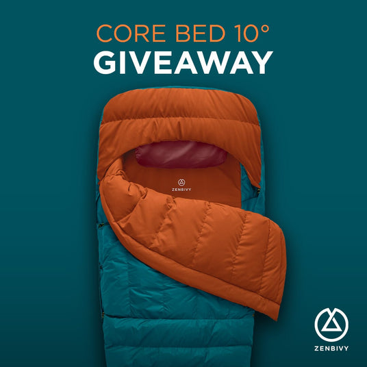 Enter for a chance to win a complete Zenbivy Core Bed Bundle—including a 10°F Core Bed, Light Mattress, SoftTop™ Pillow, and a Dry Sack!