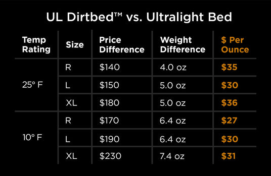 Save $27–$36 per ounce compared to our premium Ultralight Bed, with only a small increase in weight.