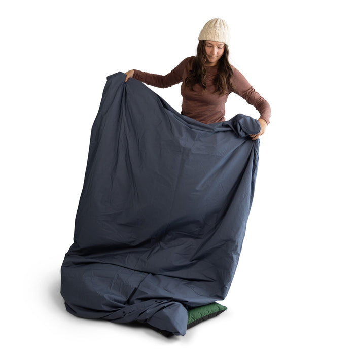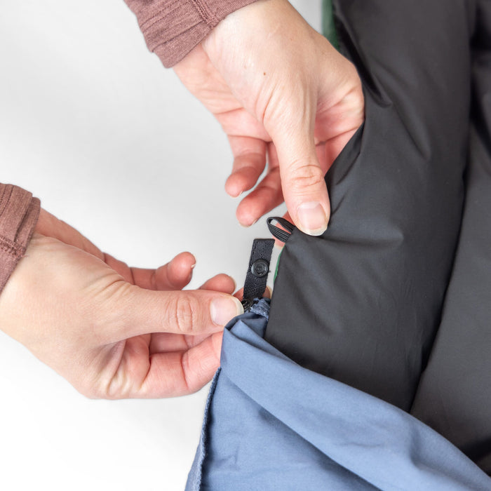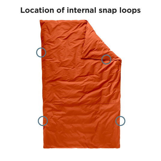The Duvet Cover attaches to your Zenbivy Convertible Quilt using (4) snap loops. Match these to the (4) corresponding loops on the quilt.