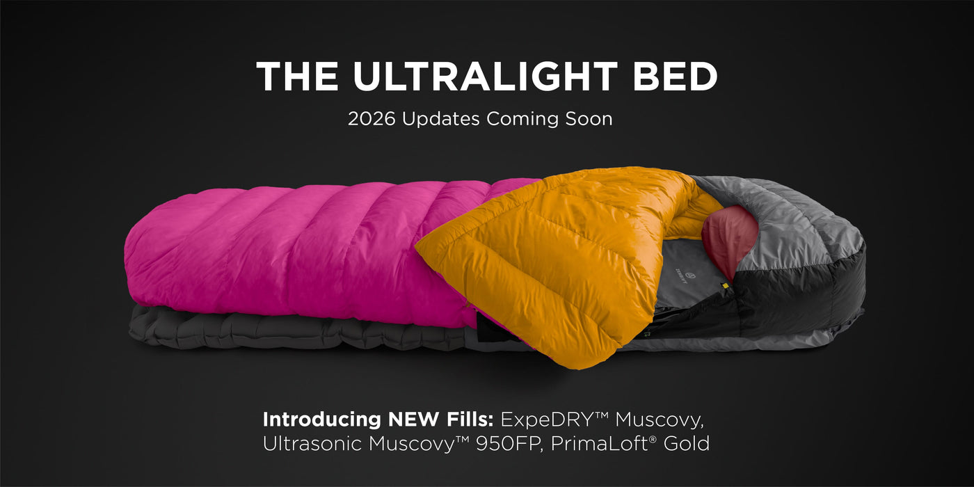 We're also introducing our first-ever synthetic Ultralight Bed powered by PrimaLoft® Gold insulation. Alongside our tried-and-true ExpeDRY™ Goose 900FP, you'll have four premium insulations to choose from!