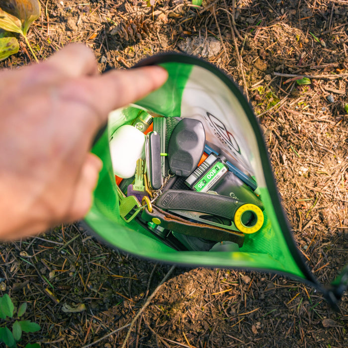 The ideal size for most backpackers. Great for organizing all your trail staples like a toothbrush, headlamp, phone, etc. Small enough to tuck away, big enough to carry what matters.
