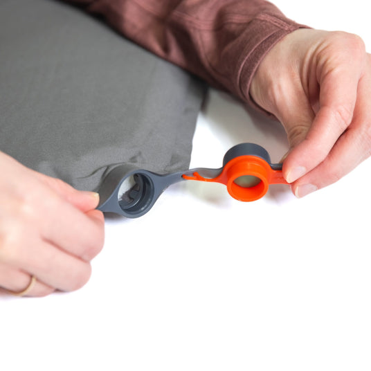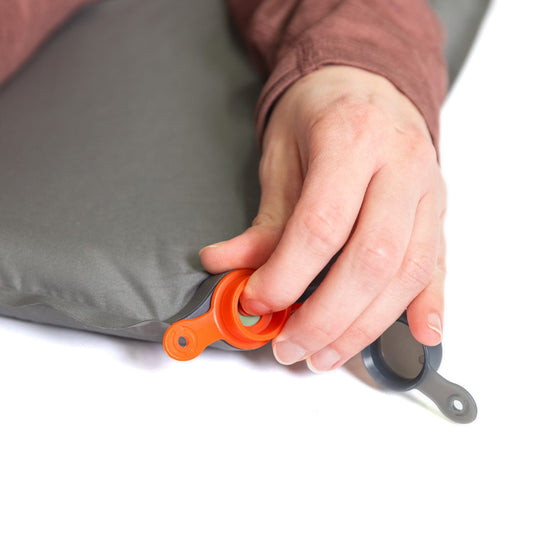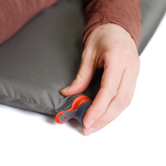 Note that the red valve is reversible. There is an "Inflate" mode to keep air in while you inflate, and a "Deflate" mode to keep air out when you go to pack it up.