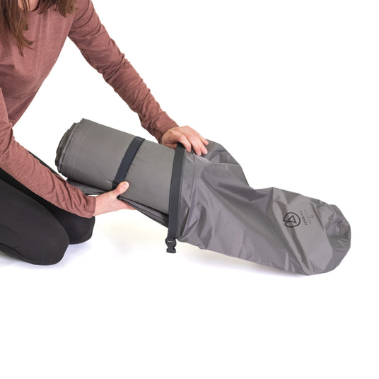 Roll the top of the inflation dry sack down and clip the ends together to secure it.