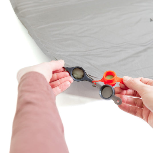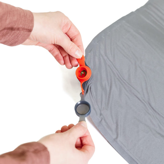 Pop the red valve back in on the "Inflate" side and couple the inflation sack to it. Gather air and push it through until the mattress is firm.