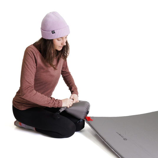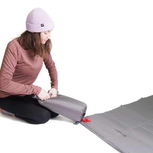 Starting from the foot end, begin to roll the mattress up towards the head (valve) end. It doesn't need to be perfect at this stage, you're just trying to get most of the air out.