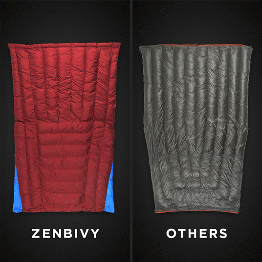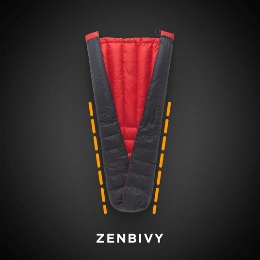A Zenbivy Bed isn’t a mummy bag or a quilt—it’s a bed. With a sheet below and a quilt above, our patented design delivers the most comfortable, draft-free sleep in the backcountry. It's the only complete sleep system on the market that's lightweight, comfortable, versatile, and warm.