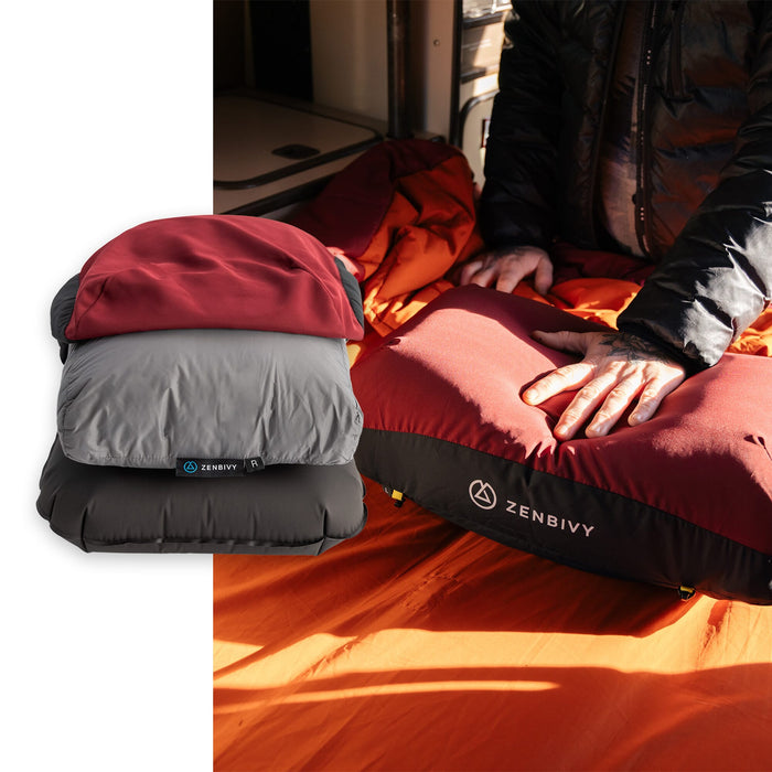 The Zenbivy SoftTop™ Pillow is the only modular backpacking pillow that provides maximum comfort at minimum weight. The 3-piece design includes a down pillow topper for softness, an ultralight inflatable bladder for support and height adjustment, and a separate pillowcase for easy washing.